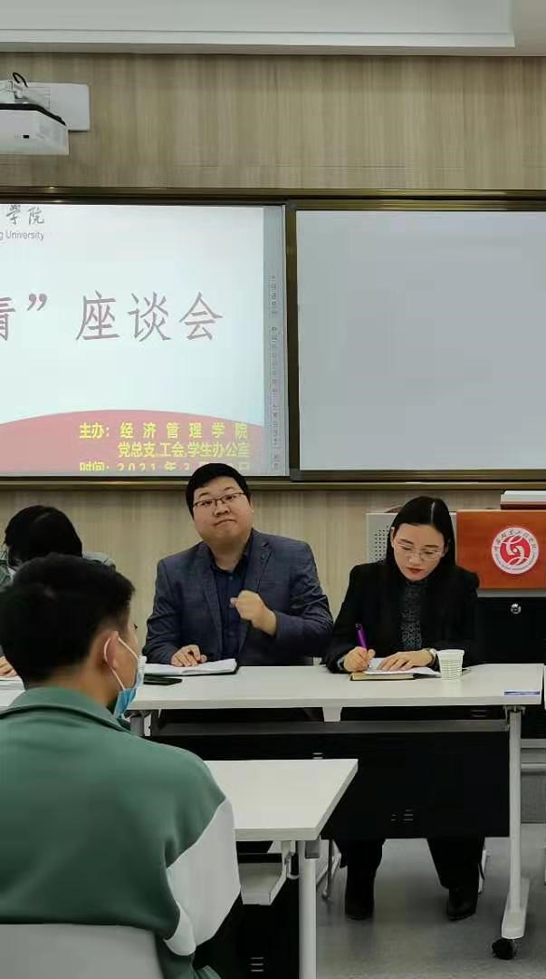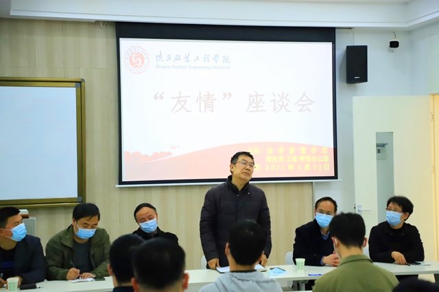 陕服新闻网讯(李文斌)2021年3月23日,雨霁风光,春分天气,千花百卉争明媚。陕服校园沉浸在胜利的喜悦中。刚刚过去的两周,陕服人经历了一场惊心动魄的考验。因为我校有两名学生在坐高铁时不幸与后来确诊的一名新冠肺炎患者同行,被定为B级接触者,最终导致我校100多名师生被隔离观察,全校所有在校师生做核酸检测。所幸,所有师生平安无恙,被隔离师生也都平安回到学校。蔼蔼咸阳都,冠盖日云积。平安二字抵万金,漫卷诗书喜欲狂。为慰问平安归来的百余名师生,也为了总结这次应对突如其来的疫情的经验教训,经济管理学院在B208教室组织召开了疫情中“友情座谈会”。学校副校长李宗领教授、人事处处长王捍政教授、经济管理学院院长杨生博教授、团委书记董良超老师、学生主管陈力军老师,经济管理学院辅导员代表、教职工代表出席座谈会。会计学创新ZC2001班和电子商务2001班的全体同学参加座谈会。经济管理学院副院长李玉玫副教授主持会议。