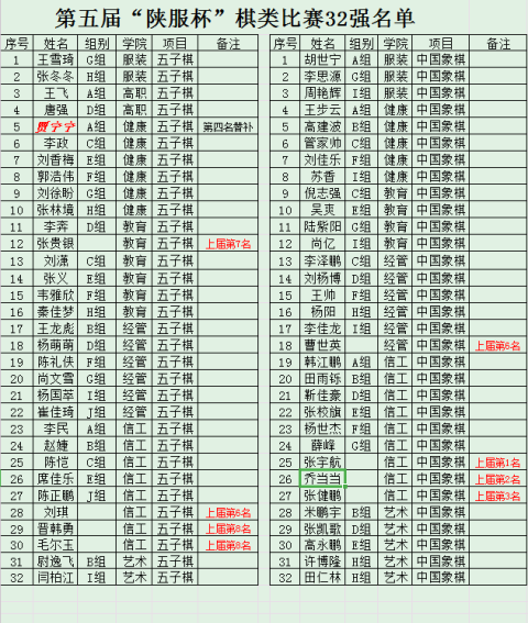 附:第五届“陕服杯”32强名单
