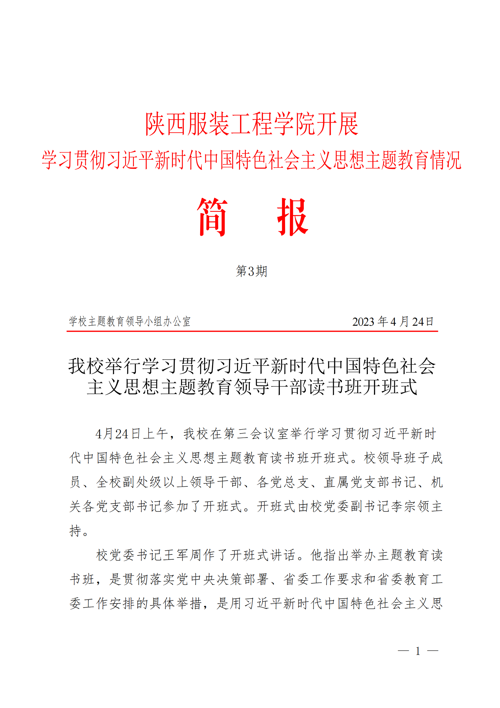 (第3期)我校举行学习贯彻习近平新时代中国特色社会主义思想主题教育领导干部读书班开班式