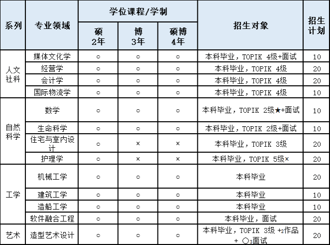 四.毕业条件:根据学校专业具体要求,语言达到TOPIK3-4级