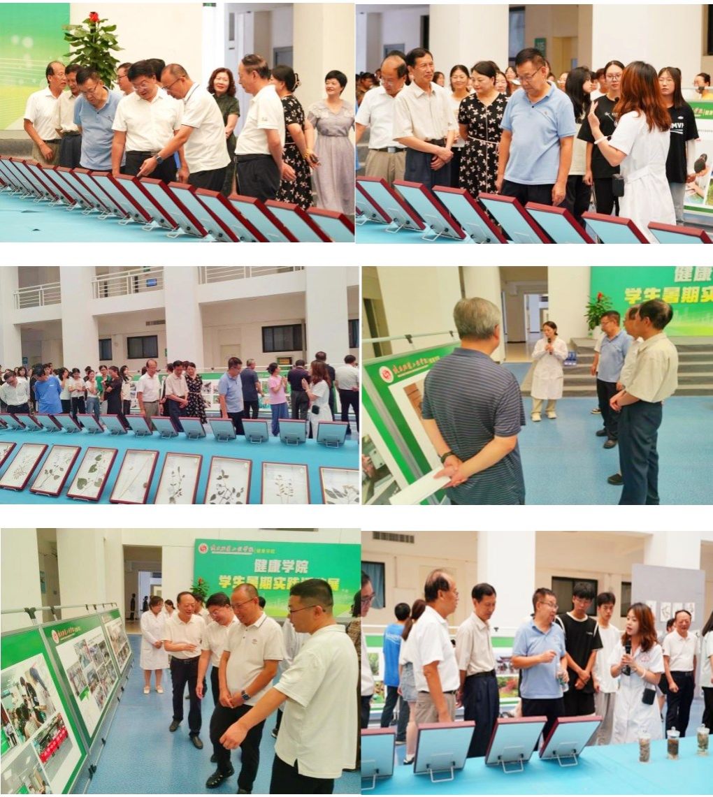 霍科科向参加活动展的领导、嘉宾及师生表示欢迎和感谢。他介绍了此次展览的主要内容。第一部分是师生在陕西省宝鸡市太白县桃川镇进行的中药材野外综合实践,展示内容包括学生采集、制作的中药材标本、药用动物标本及野外实践活动照片、野生中药材照片及实习地的自然与人文环境;第二部分是健康学院药学系和健康管理系学生赴企业、医院等开展企业授课和专业实习的掠影;第三部分是健康学院各学生团队在老师的带领下赴宝鸡、渭南、延安等地开展“三下乡”社会实践和服务活动。他还介绍了暑期工作亮点:由学生党支部书记张涵、教师董林娟及2023级护理李一诺、沙佳怡、田锴睿等同学组成的“健语心田”团队,赴宝鸡市天王镇开展的乡村医疗志愿服务活动,获得了实践地一致好评,先后被大学生云报、华商网、中华网等媒体宣传报道。最后,他对各位老师在暑期克服困难不畏酷热,带领学生走进大山,深入企业、医院、社区开展专业实践和社会服务活动,表示诚挚感谢。