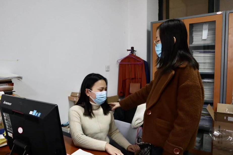 在工作之余,她还格外留心每一位在校老师的生活状况。随着疫情的越发严重,部分教师出现了烦躁、焦虑等一些负面情绪。杨老师知道后,积极对其进行心理疏导,稳定大家的情绪。然而在此之前,她已有近一月时间未曾回家。尤其是在听到老家——西安鄠邑区也出现确诊患者后,心情很是沉重,每天都在为家中的父母担忧,恨不能回家陪伴父母左右。但为了工作、为了不影响他人,仍是强打精神、用忙碌的工作让自己忘记一切。