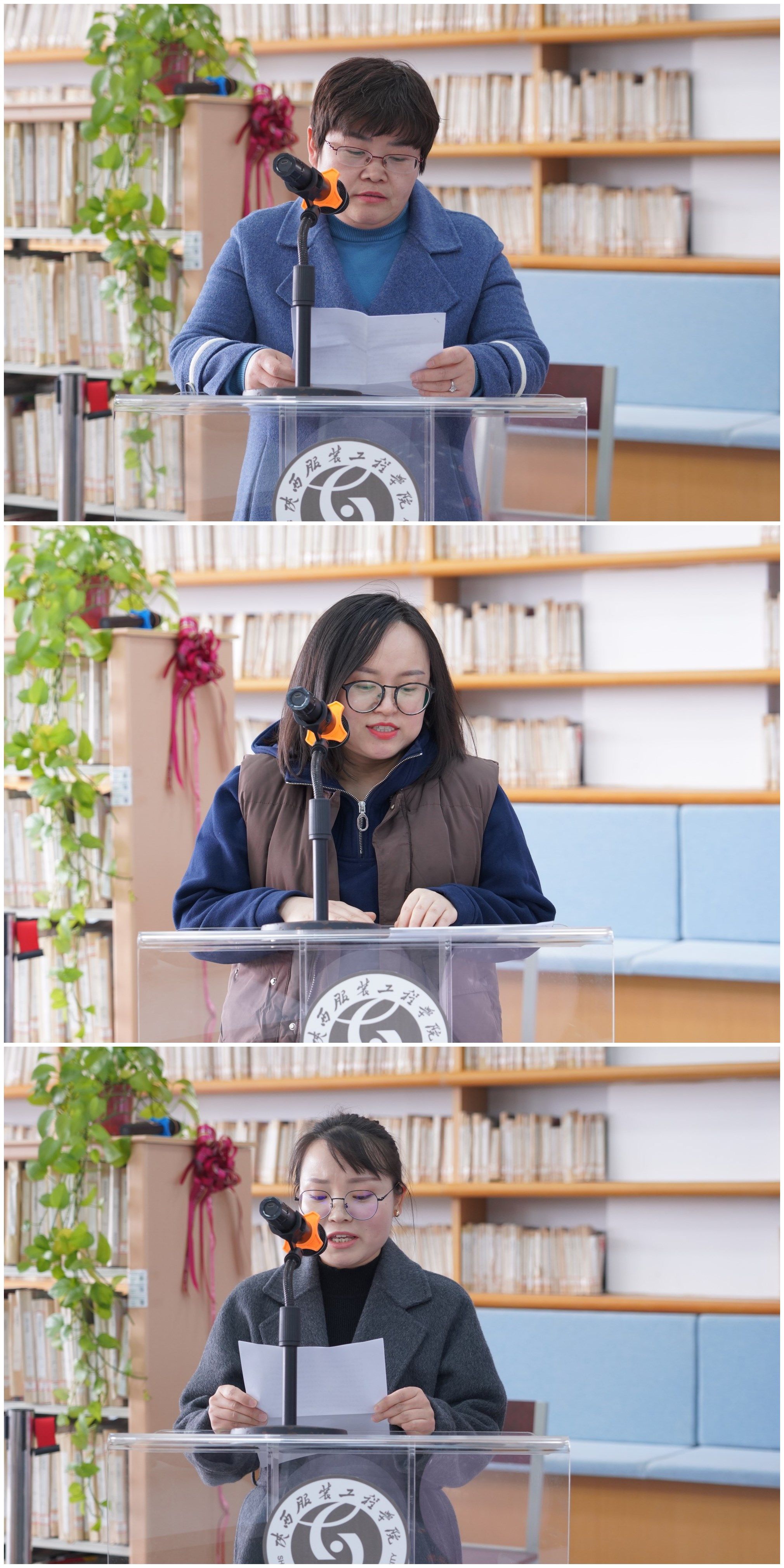服装学院教授贺俊莲、马克思主义学院副教授王欢、教育学院教师李月星代表全体女教师作了发言分享。分享她们感恩党和国家、感恩社会和时代、感恩学校,以校为荣,践行教育家精神,不忘初心、坚守一线、乐教善教、潜心育人,绽放芳华,与陕服同成长,收获事业与家庭的美好篇章……