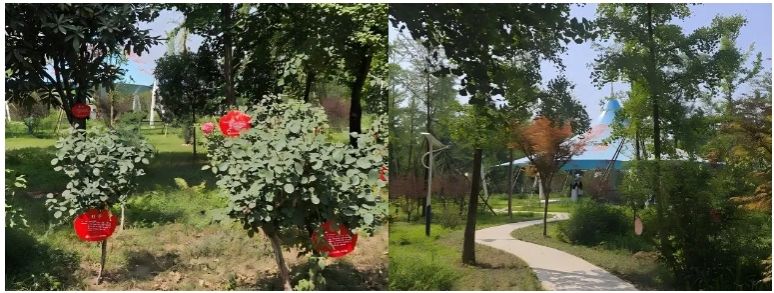 周至校区丰富多样的植物资源构筑起一座天然的 “植物课堂”。曹雪阳、陈文静两位教师引领学生漫步于校园小径,穿梭在绿树繁花之间,开展系统的景观植物识别实践活动。
