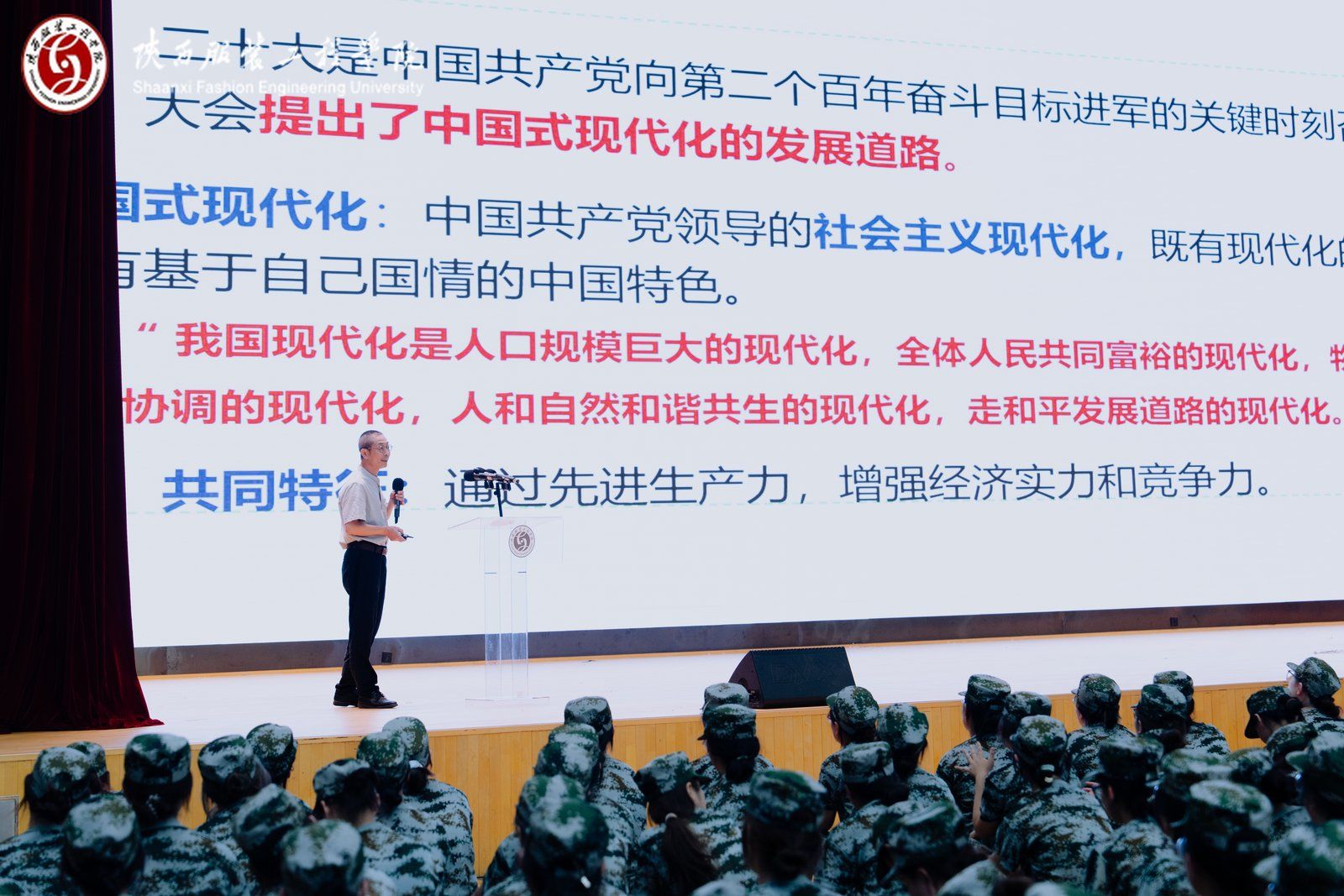 王岗指出,董事长和两位校长的开学第一课,既是一堂开学动员课,也是一堂思想政治课,更是一堂职业生涯教育课,让我们以此为契机,上好大学生活的每堂课。当前,智能大潮滚滚而来,十月,将召开二十届四中全会,制定国家发展“十五五”规划,到2035年,将全面实现中国式现代化,陕西省也适时提出文化强省、教育强省和科技强省战略,给我们提供了机遇和挑战。让我们发扬伟大的抗战精神,在陕服、镐京的校园里求真知、练本领、勇担当,争做不负于时代的合格的社会主义建设者和接班人!