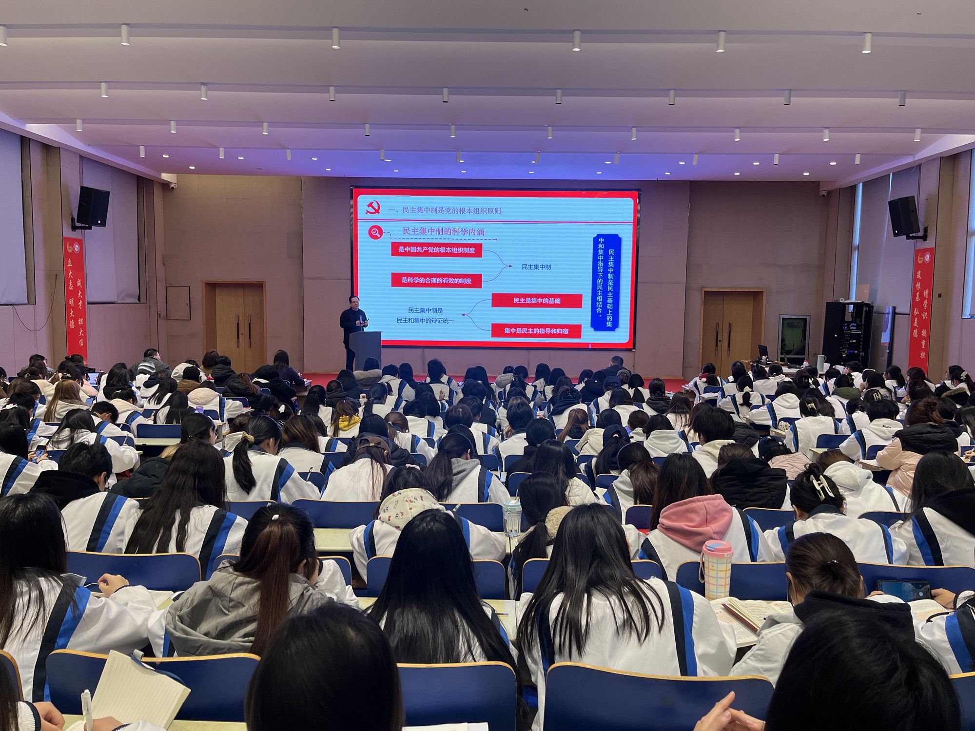 党委宣传部副部长菅建伟围绕“端正入党动机—扣好入党的第一粒扣子”,从什么是正确的入党动机,如何树立正确的入党动机,以实际行动加入中国共产党三个方面展开授课。她强调,入党动机是成为一名合格党员的第一起点,要始终秉持正确的入党动机,坚持全心全意为人民服务。要在日常工作和学习中自觉严格要求,脚踏实地,志存高远,砥砺奋进,展现出当代青年大学生的良好精神风貌。