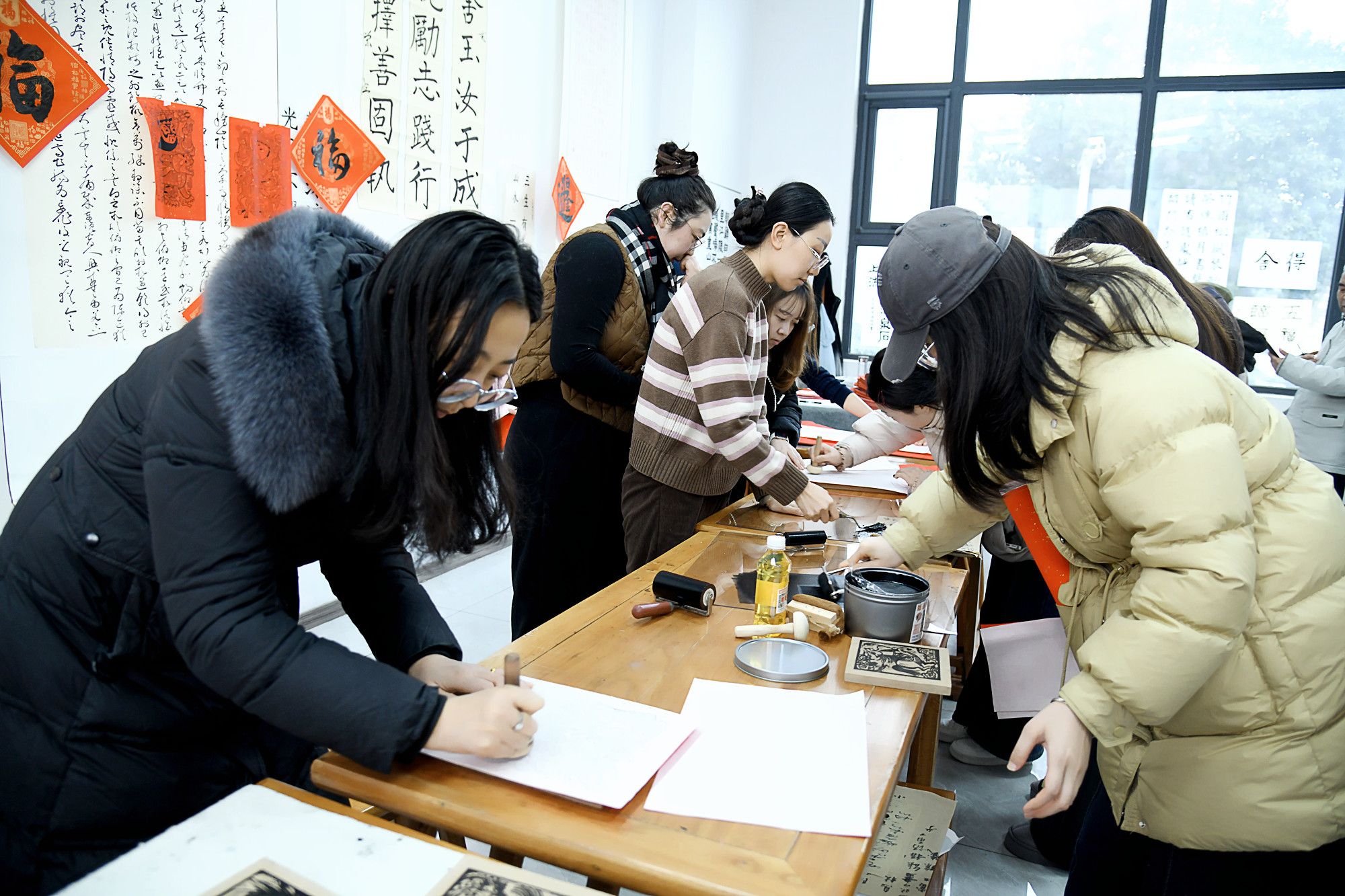 陕服新闻网讯(李文斌)1月21日,校工会、艺术设计学院在校书法室举办“寻味中国年 非遗贺新春”2026丙午马年写春联活动。