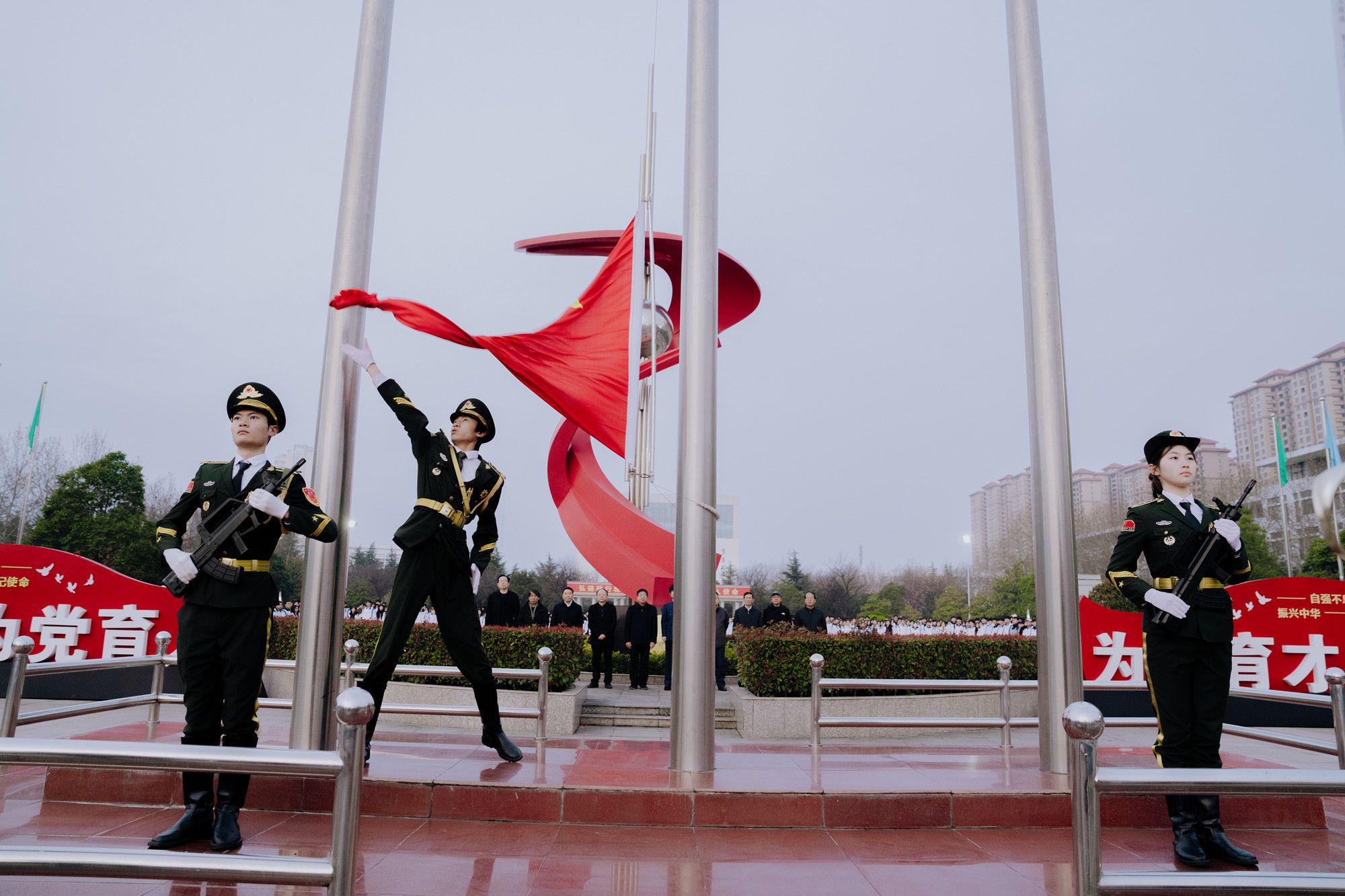 升旗仪式在师生同唱陕服校歌之后圆满结束。
