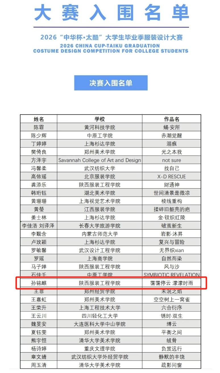 我校学子孙铭麒获2026“中华杯”大学生毕业季服装设计大赛铜奖